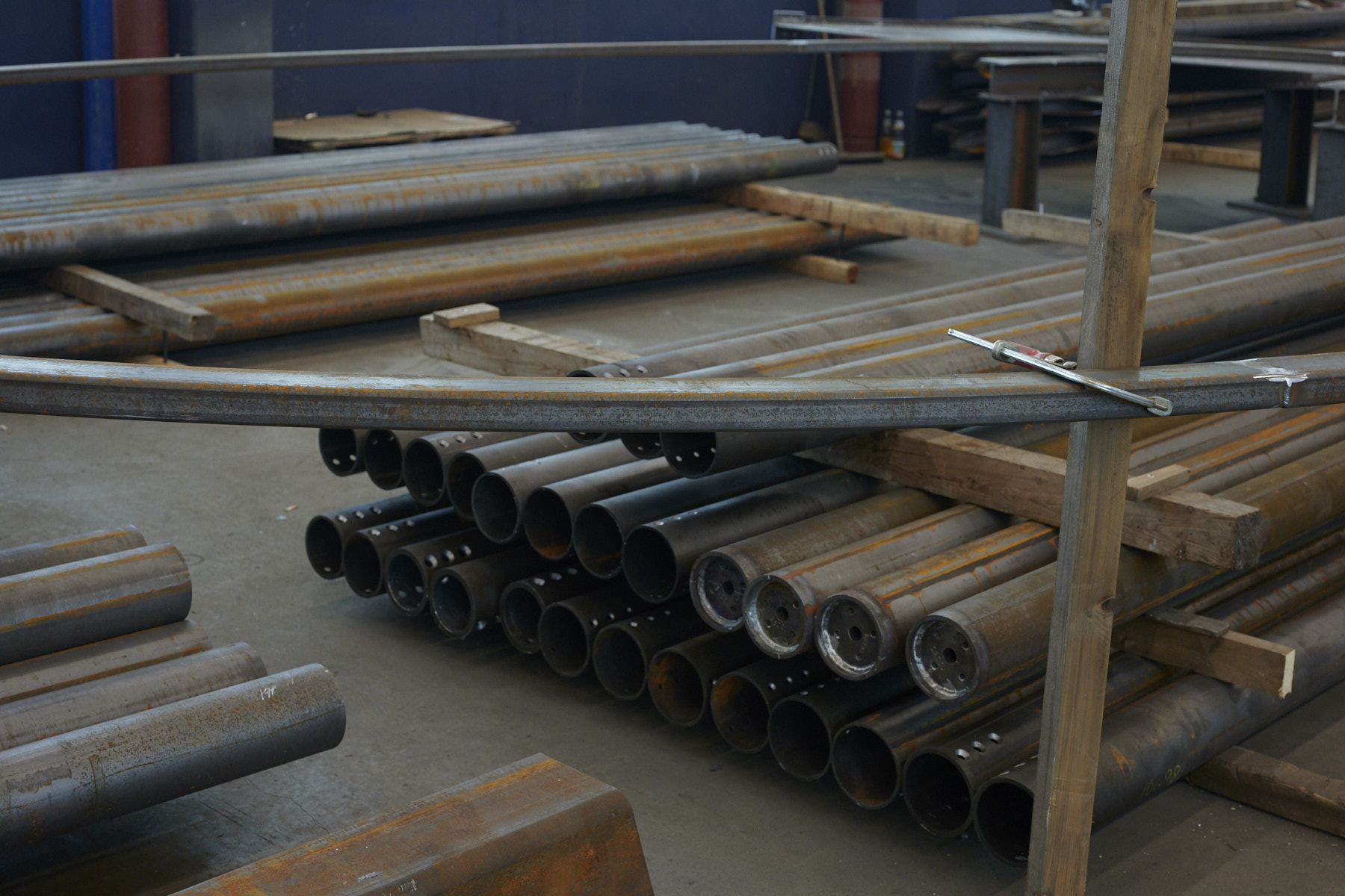 Eine besondere Herausforderung stellte die Biegung der Randträger aus Stahl-Rechteck-Hohlprofilen dar. Zum Biegevorgang wurden die Profile mit Wasser unter 6 bar Druck verfüllt, um einen stabilisierenden Innendruck zu erzeugen, der ungewollten Verformungen entgegenwirkte.Eine besondere Herausforderung stellte die Biegung der Randträger aus Stahl-Rechteck-Hohlprofilen dar. Zum Biegevorgang wurden die Profile mit Wasser unter 6 bar Druck verfüllt, um einen stabilisierenden Innendruck zu erzeugen, der ungewollten Verformungen entgegenwirkte.